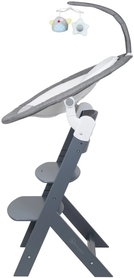 Daarnaast wordt de swing geleverd met een BabyGo Family kinderstoel. De swing is makkelijk op de kinderstoel te bevestigen met de adapters waardoor je je kleine hoger kan zetten om er zo beter bij te kunnen. Van deze kinderstoel is zowel de zitting als de voetensteun in 3 verschillende hoogtes te verstellen zodat er altijd een comfortabele positie voor je kindje te vinden is.