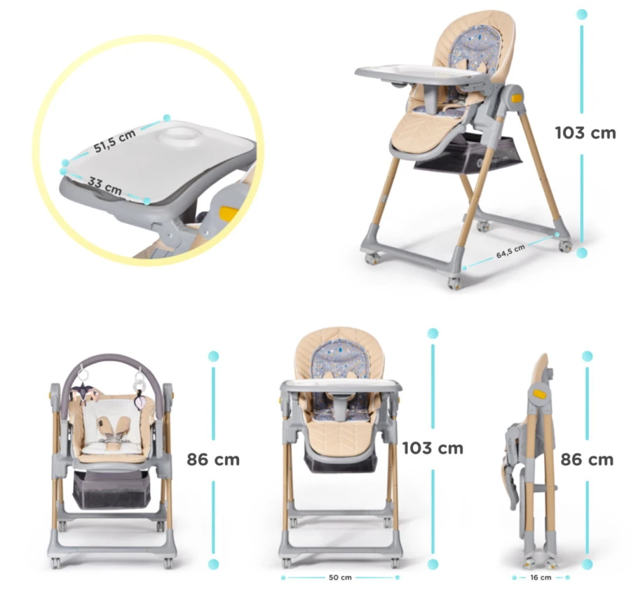 Zodra je kindje wat groter wordt, kun je de rugleuning rechtop zetten en schuif je de stoel gemakkelijk aan tafel! Het zitje is in hoogte verstelbaar, zo past hij aan vrijwel elke eettafel. Tevens zijn de voetensteun en het (afneembare) tafelblad verstelbaar. Spulletjes voor je kindje bewaar je eenvoudig in het zakje achter de stoel of het mandje onderaan. De zitting is gemaakt van eco-leer en is daardoor erg makkelijk schoon te maken.