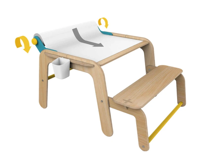 Vindt jouw kindje het ook zo leuk om de mooiste kunstwerken te tekenen? Of wil je samen met jouw kindje oefenen met schrijven of rekenen? Dan is dit tekentafeltje met bankje perfect geschikt voor je kindje. De tafel wordt geleverd met een rol tekenpapier die eenvoudig gemonteerd kan worden aan de achterkant van het tafeltje, hierdoor is het makkelijk voor jouw kindje om in een keer door te kunnen kleuren. Daarnaast zit er een pennenhouder bij, waardoor je kindje alles bij de hand heeft om de mooiste kunstwerken te maken.