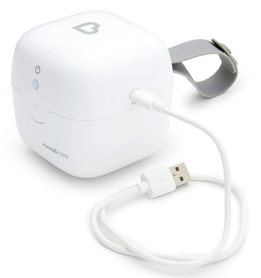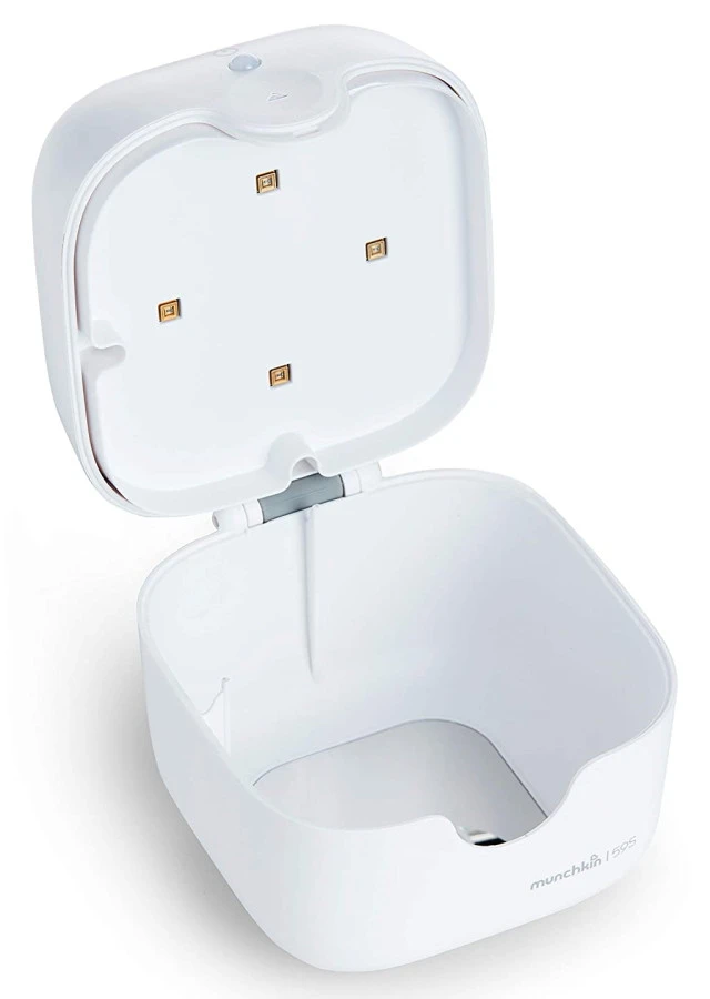 Deze draagbare sterilisator reinigt fop- en flesspenen en klein speelgoed in minder dan een minuut. Het reinigt 99% van de bacteriën en virussen met UV-licht, waardoor water en dergelijke niet meer nodig zijn! UV-licht is een veilige en bewezen methode om bacteriën te doden zonder schadelijke chemicaliën. De veilige UV-lamp schakelt automatisch uit wanneer de deksel wordt geopend.