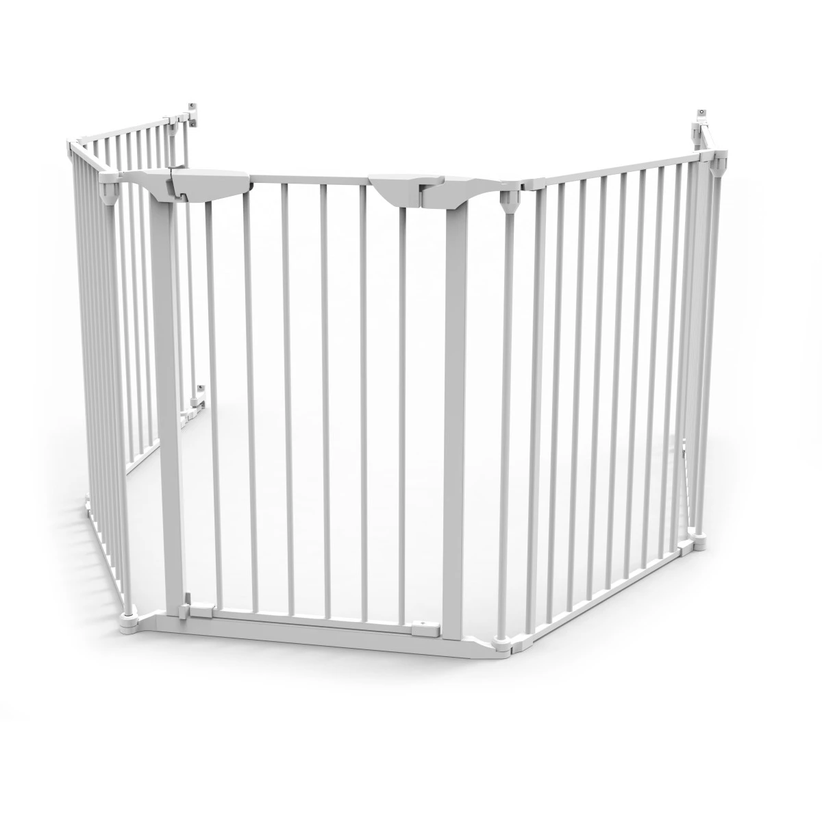 Met de Noma 5-delige kamerverdeler kun je grote en kleine ruimtes afsluiten of veilig stellen voor je kleine. Het multifunctionele veiligheidshek is speciaal ontworpen voor grotere openingen, tot een maximale lengte van maar liefst 315 cm. Het traphekje kan zowel dienen als traphek, kamerverdeler, box, en haardhek. Je kunt het hek dankzij de 5 afzonderlijke panelen zowel schuin als recht plaatsen.
