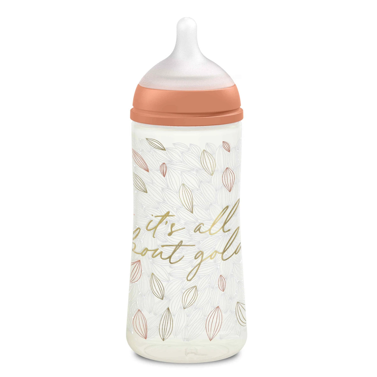 Wat een prachtige fles uit de Gold collectie van Suavinex! Het flesje is gemaakt van kunststof en heeft een fijne vorm die makkelijk is vast te houden.